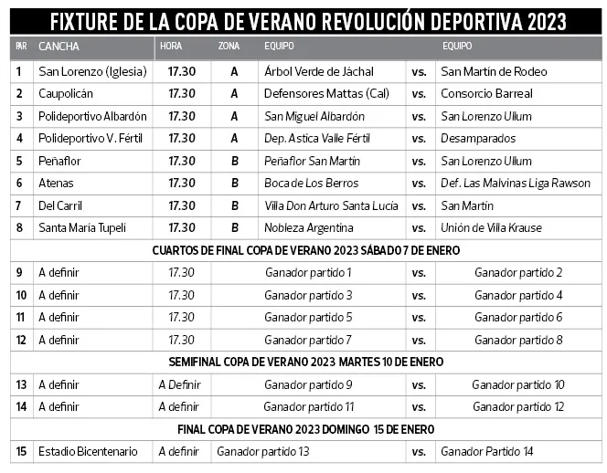 Desde este miércoles y organizado por la Secretaria de Deportes de la Provincia comienza la Copa de Verano Revolución Deportiva 2023 que tendrá la participación de 16 clubes de todas las ligas del interior de San Juan.