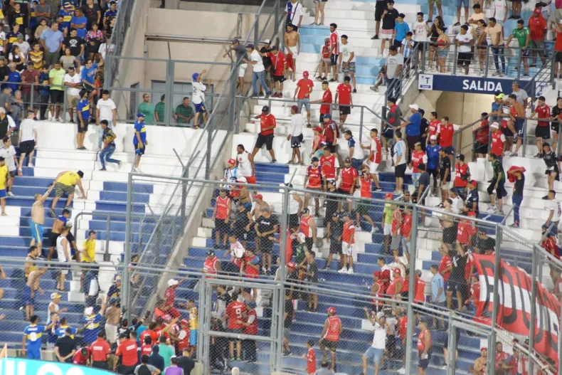 Afortunadamente, nada pasó a mayores y el desarrollo del encuentro culminó con normalidad hasta que Boca tuvo la más clara en la cabeza de Romero, pero pasó por arriba del arco.