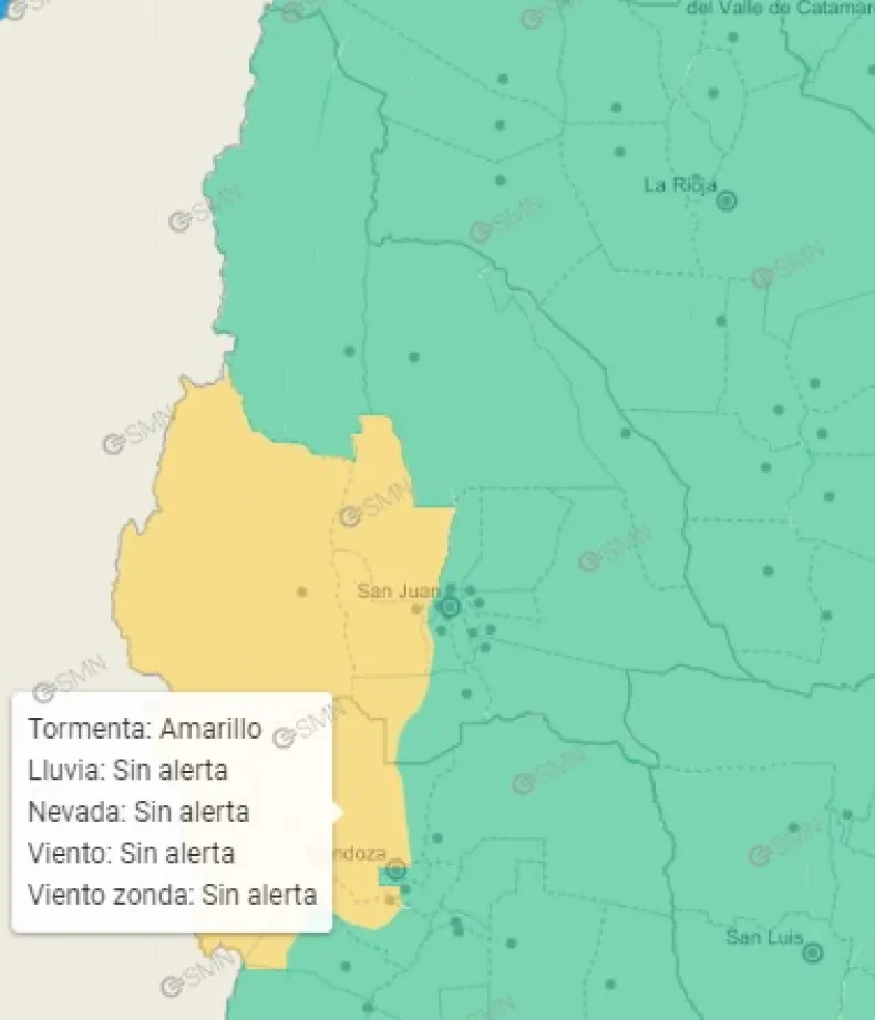 El Servicio Meteorológico Nacional advirtió sobre posibles tormentas en varias zonas del territorio sanjuanino.