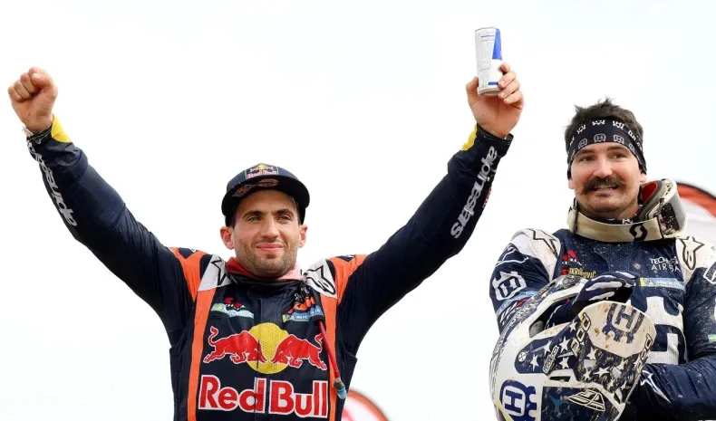 El piloto argentino Kevin Benavides, a bordo de su moto KTM del equipo Red Bull, se coronó este domingo campeón del Rally Dakar en Arabia Saudita por segunda vez.