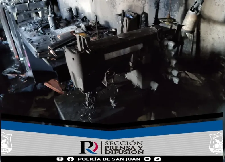 Personal policial del Cuartel Central de Bomberos intervino en la extinción de incendio del inmueble de dos plantas. También, informaron que no hubo personas afectada solamente pérdidas materiales entre maquinaria y rollos de tela, muebles de madera.
