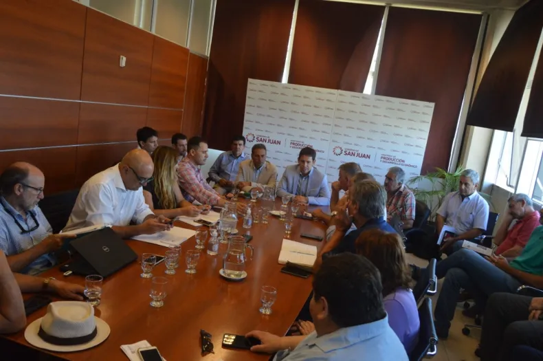 El ministro de la Producción de provincia, Ariel Lucero, recibió ayer en la sala de situación del organismo a los representantes de las entidades viñateras de San Juan y de Mendoza que fueron a presentarle un trabajo que hicieron sobre el precio referencial del kilo de uva para la próxima cosecha que consensuaron basándose en el costo de producción establecido por la Estación Experimental del INTA de Junín.