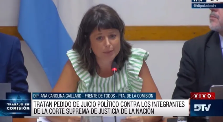 Fue en el marco de la comisión de Juicio Político, que preside la diputada Carolina Gaillard (FdT). Juntos por el Cambio propuso la inadmisibilidad "in limine" del proceso de juicio político a miembros de la Corte.
