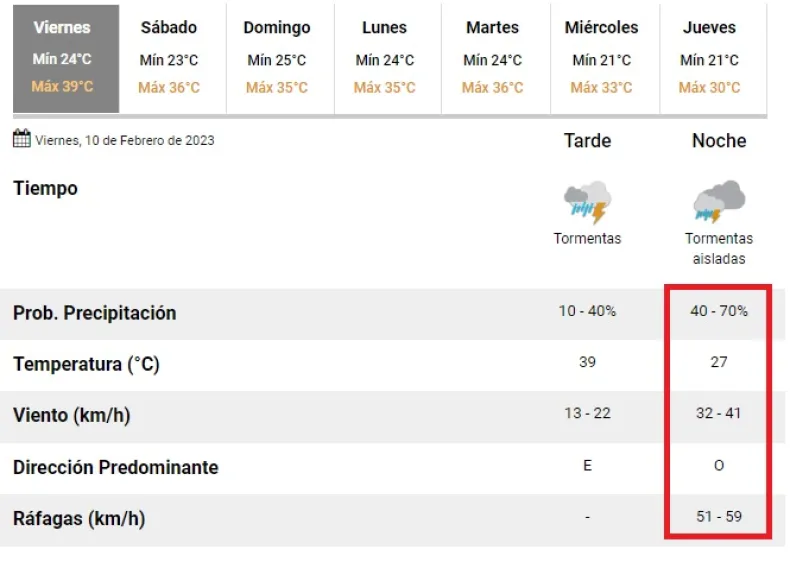 Con el viento también llegarían nubes, aunque no habrá cambios en las temperaturas ya que mañana la máxima se espera que sea de 36°C, en tanto para el domingo será de 35°C, el calor no afloja.