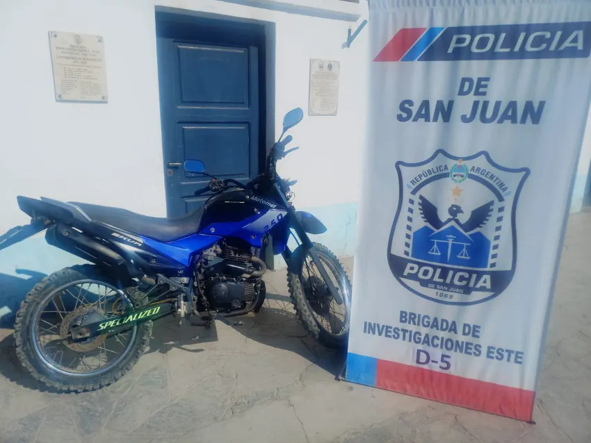 Personal policial de la Brigada de Investigaciones Este, pudo recuperar una moto, tipo enduro, que había sido sustraída en el departamento Caucete y que, luego los delincuentes dejaron abandonado en un descampado.