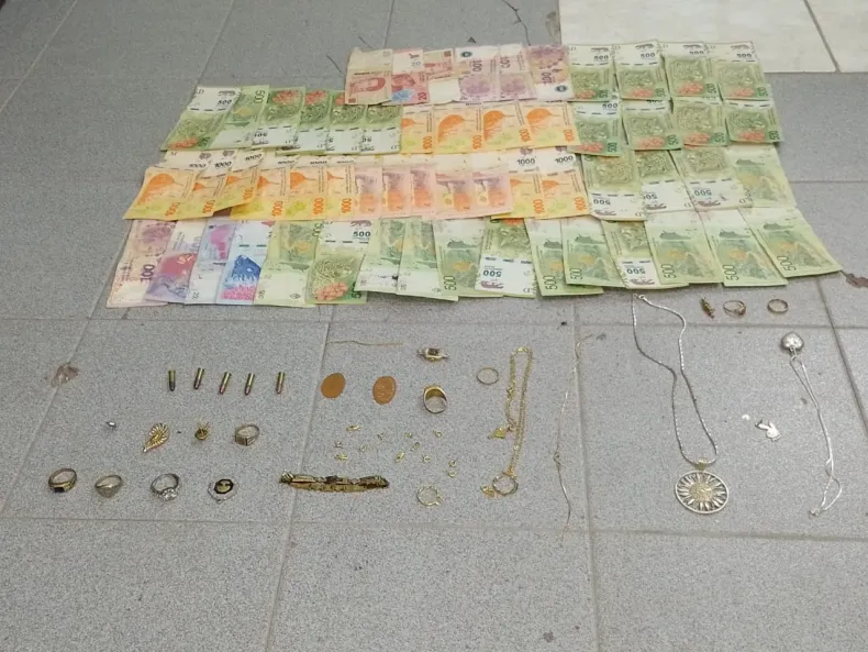 El resultado de ambos procedimientos fue el esperado. Contando con la colaboración de personal policial de Brigada de Investigaciones Este, secuestraron 32.690 pesos, 5 proyectiles calibre 22 y la totalidad de las joyas denunciadas.