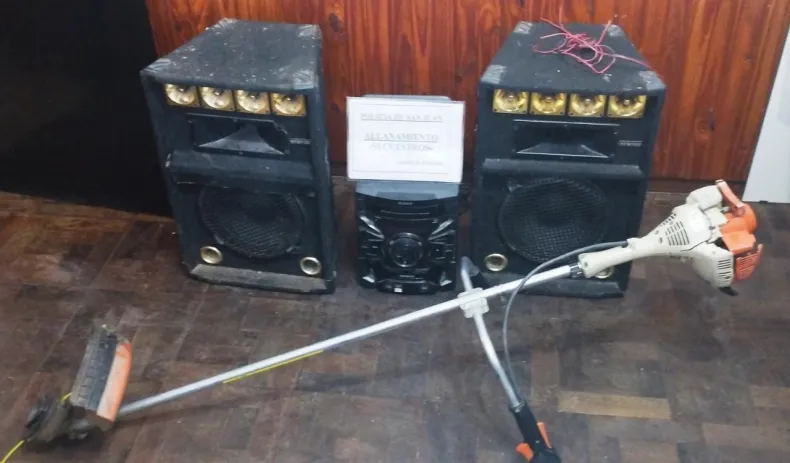 Hoy, en horas de la mañana, con una orden de allanamiento, procedieron a secuestrar el rodado y, también, hallaron celulares. Pero además, encontraron notebok, parlantes, equipo de música y hasta una motoguadaña donde sus propietarios no pudieron acreditar su procedencia.
