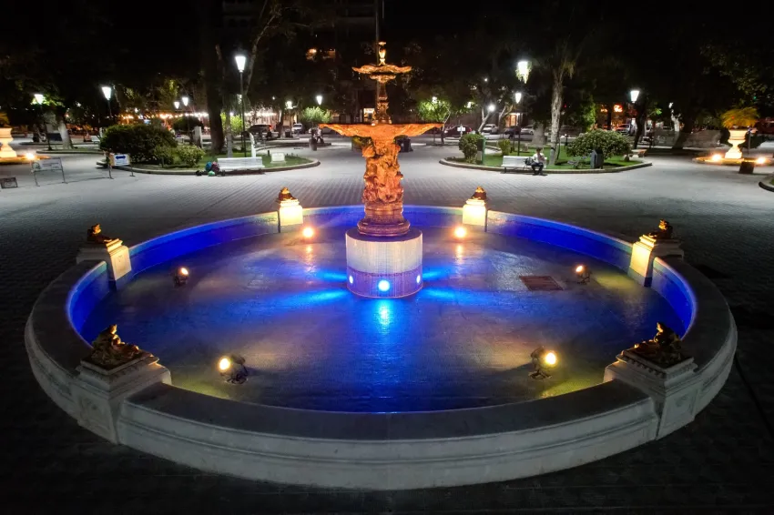 Toda la intervención implica un gran desafío de no alterar de ningún modo los elementos que son patrimonio. Por ello, la fuente ha recibido un trato diseñado a medida entre los profesionales de la Asociación Civil para la Conservación y Defensa del Patrimonio Sanjuanino (Accodepas) y el reconocido artista plástico Hugo Vinzzio Rosselot.