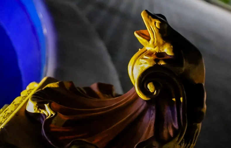 Se repusieron las venecitas faltantes y la fuente lucirá el color de su elemento natural: el hierro. También quedaron restaurados los sapitos de bronce que con el paso del tiempo se habían deteriorado y son obra del escultor Miguel Ángel Sugo. Aun no tirarán los chorros de agua.