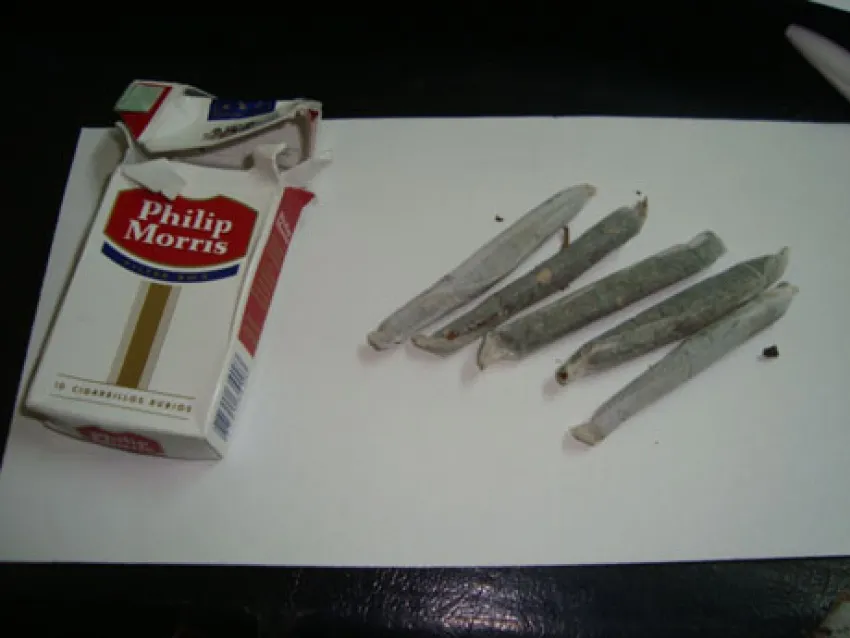 Fue en esa inspección que los policías les secuestraron un envoltorio que contenía cigarrillos de marihuana, comúnmente conocidos como porros.