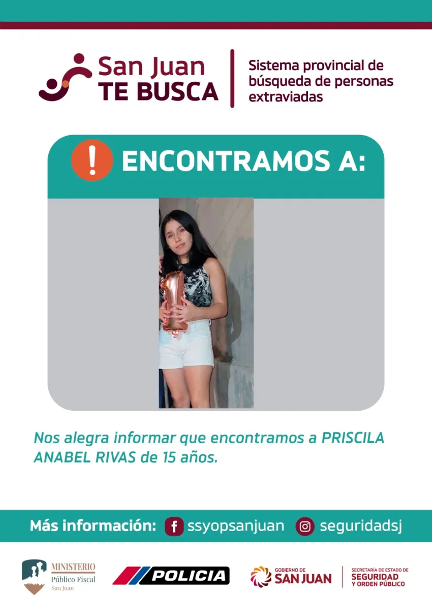 Afortunadamente, la menor de apellido Rivas, fue encontrada en buenas condiciones. Luego de los trámites de rigor, será restituida a su familia.