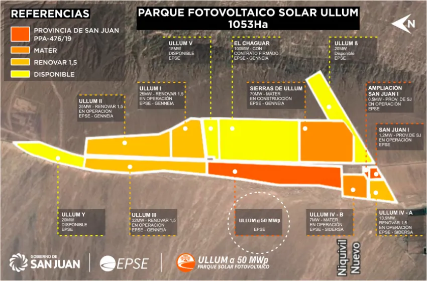 Actualmente, el 46% de los parques solares en operación en la Argentina se encuentran en San Juan, y sumando todos los proyectos solares adjudicados a través de las ronas 1, 1.5 y 2 de RenovAr y los proyectos presentados a través del MATER (Mercado a Término en Energías Renovables), San Juan se encuentra en el primer lugar del país en cantidad de proyectos, con más del 30%.