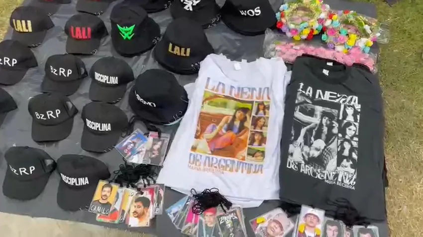 El merchandising también es parte de la Fiesta Nacional del Sol. La vendedora dio a conocer algunos precios de los artículos referidos a BZR, Laly, María Becerra y Camilo.