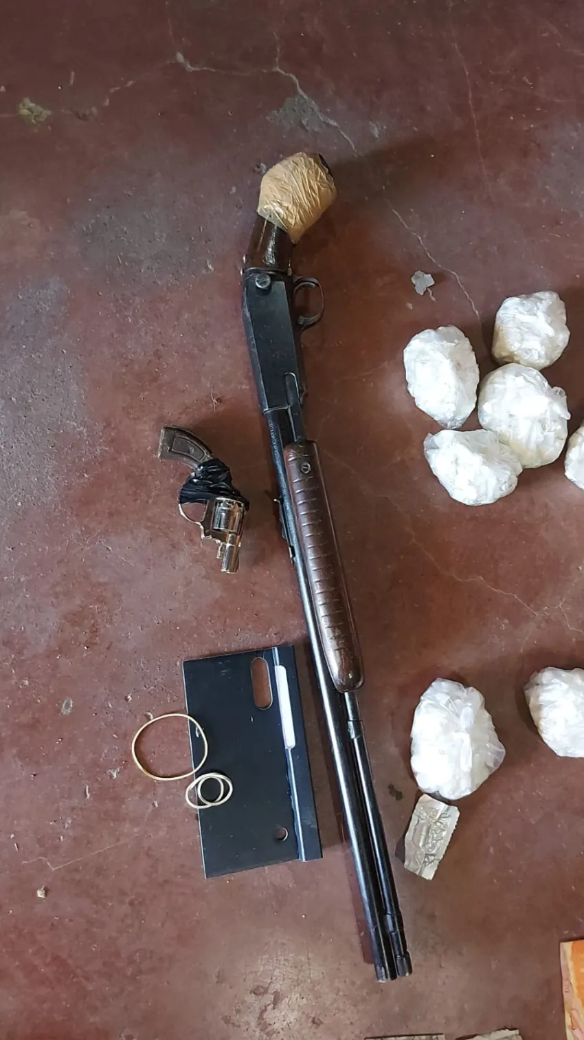 En primer momento, desde la policía informaron que se encontró en el interior de la casa, una importante cantidad de droga (cocaína), varios envoltorios y una escopeta de fabricación casera tipo tumbera.
