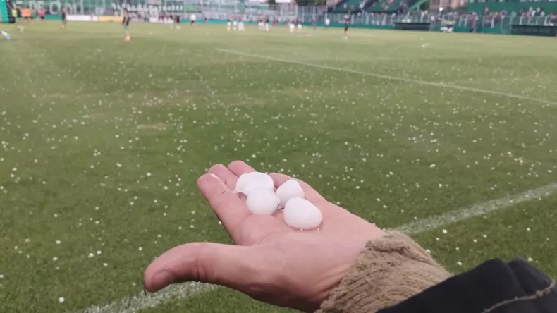 Los jugadores de San Martín y Güemes estaban en el campo de juego realizando la entrada en calor cuando de repente comenzó a caer granizo y luego lluvia que hizo que el árbitro del partido Lucas Novelli decidiera retrasar 15 minutos el comienzo del partido.