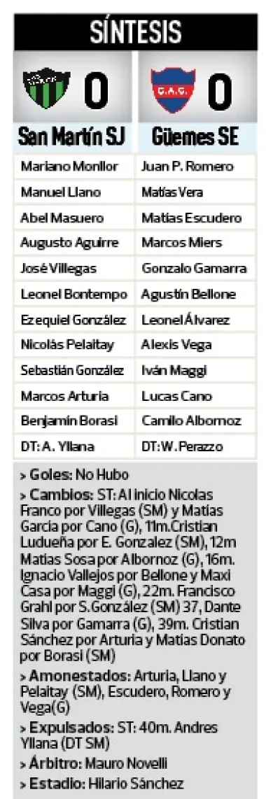 San Martín empató sin goles con Güemes de Santiago del Estero en un partido correspondiente a la 4° fecha de la Primera Nacional. No tuvo el rendimiento esperado el equipo de Yllana.