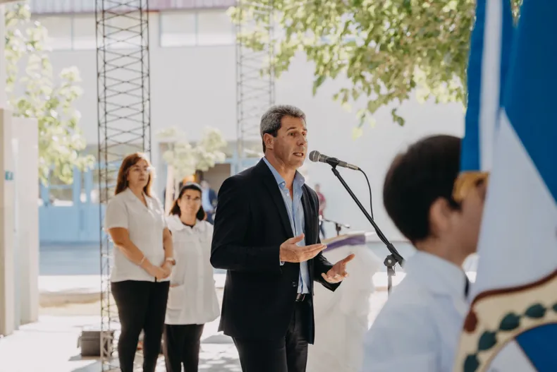 El gobernador Sergio Uñac encabezó el inicio del ciclo escolar 2023 en San Juan, en un acto que se desarrolló en la escuela Mercedes Nievas de Castro de Zonda. Lo acompañaron la ministra de Educación, Cecilia Trincado Moncho; el intendente de Zonda, Miguel Atampiz y directora del establecimiento escolar, Nancy Iovuolo.