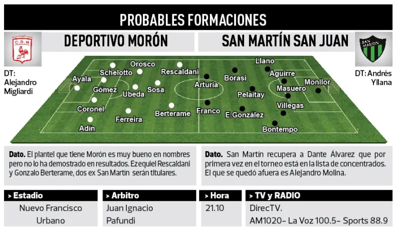 La puerta de la fecha 5 se abre en la Primera Nacional y San Martín debe ingresar para enfrentar a un Deportivo Morón tan necesitado como el Verdinegro.