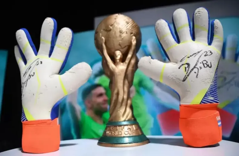 Los guantes que utilizó el arquero argentino Emiliano "Dibu" Martínez, durante el Mundial de Qatar 2022 fueron subastados hoy por 45 mil dólares, monto que será destinado a beneficio de la sala de Oncología del hospital pediátrico Juan Garrahan.
