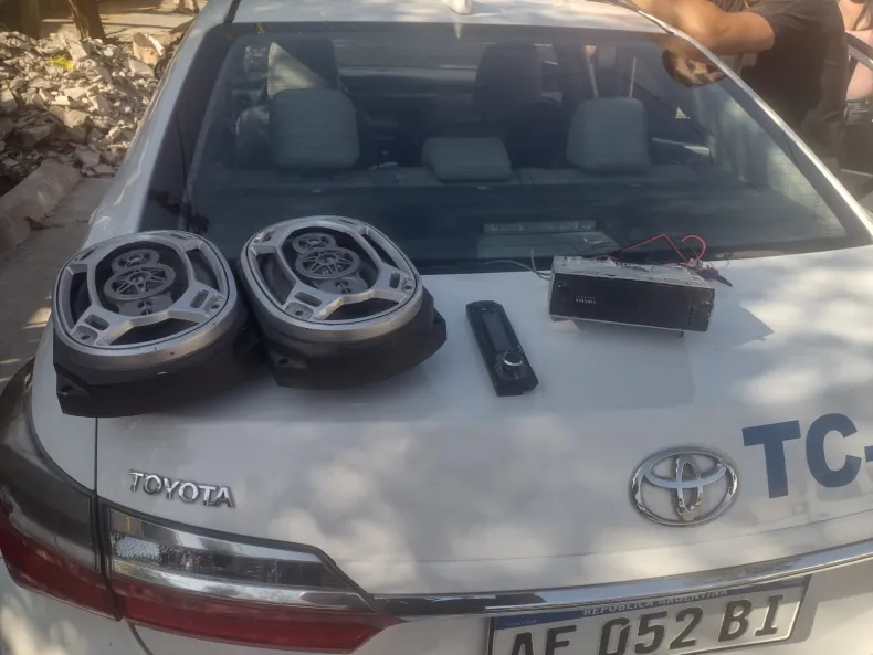 Al momento de la aprehensión, le secuestraron dos parlantes color negro con gris de 850 wats y un estéreo marca Philips.