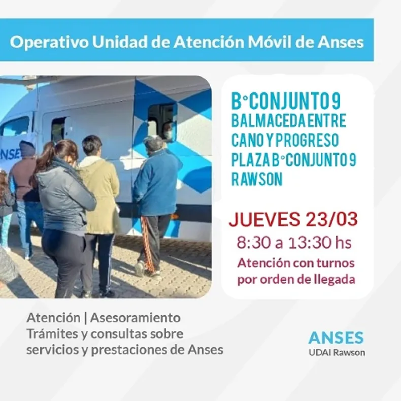 Durante los días 22 y 23 de marzo, la oficina móvil del ANSES, pondrá a disposición de los vecinos de algunos barrios de Rawson, la atención y asesoramiento de los servicios que brinda esta oficina. Cabe destacar que la tención será por orden de llegada.