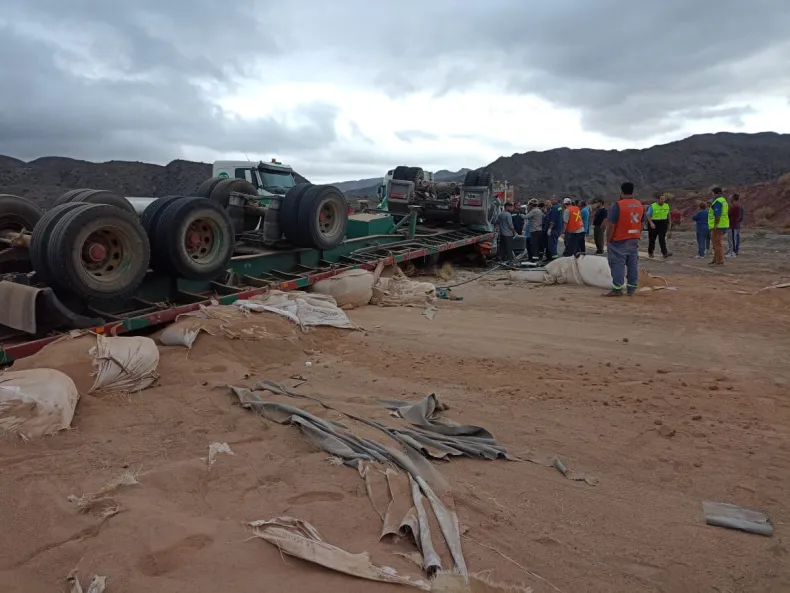 En la tarde de este jueves, un brutal siniestro tuvo lugar en plena Ruta Nacional 149. Precisamente, en el camino que une a Iglesia y Calingasta, justo en la rotonda, un camión de gran porte volcó.