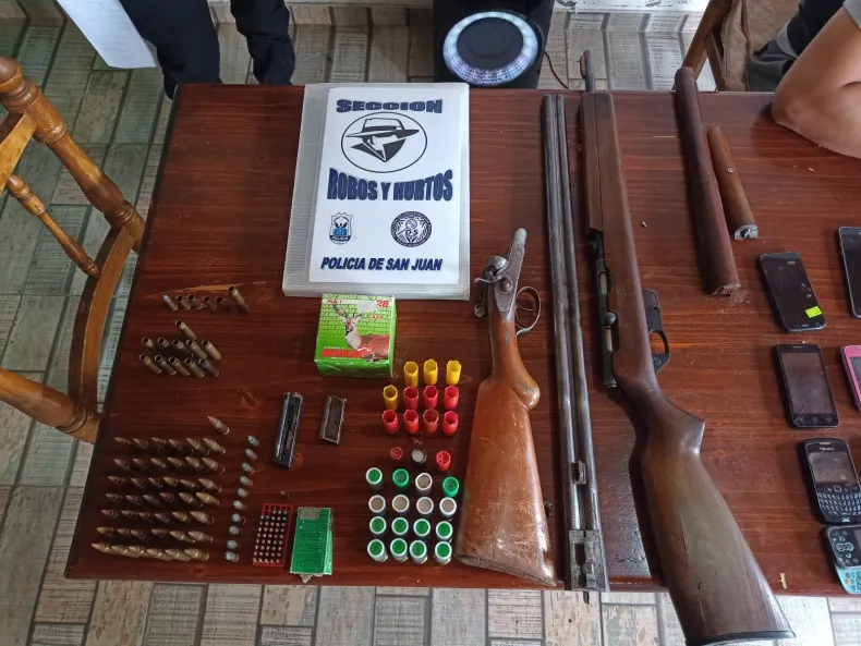 Los investigadores de la Central de Policia, hicieron varios allanamientos. En una realizado en Caucete incautaron las armas y varios celulares de dudosa procedencia.