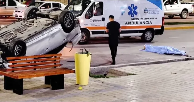 La tragedia azotó este domingo las calles del departamento Caucete. Tres automóviles estuvieron implicados en un accidente que terminó con el vuelco de uno de los coches y con un joven fallecido en el acto.