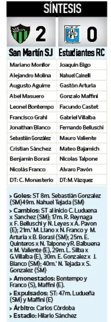 Volvió el Capitán Monasterio a Concepción. Volvió San Martín a ganar de local. Tuvo 45 minutos para ilusionarse. Cambió a tiempo para vencer a un rival muy ordenado y que no vino a defenderse a San Juan.