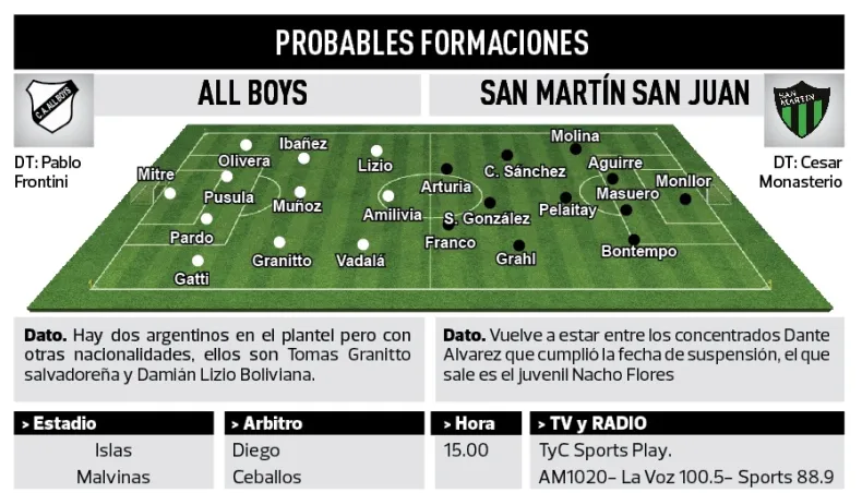 San Martín visita a All Boys en Floresta a las 15.00 en el marco de la 9° fecha y con el objetivo claro de sumar la tercera victoria al hilo.