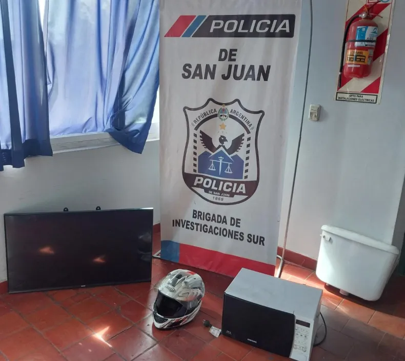 Al ingresar a la casa, donde había un hombre y una mujer, y revisar cada rincón, los uniformados dieron con varios elemenos como televisor, mochila de baño, mocroondas y un casco de motos.
