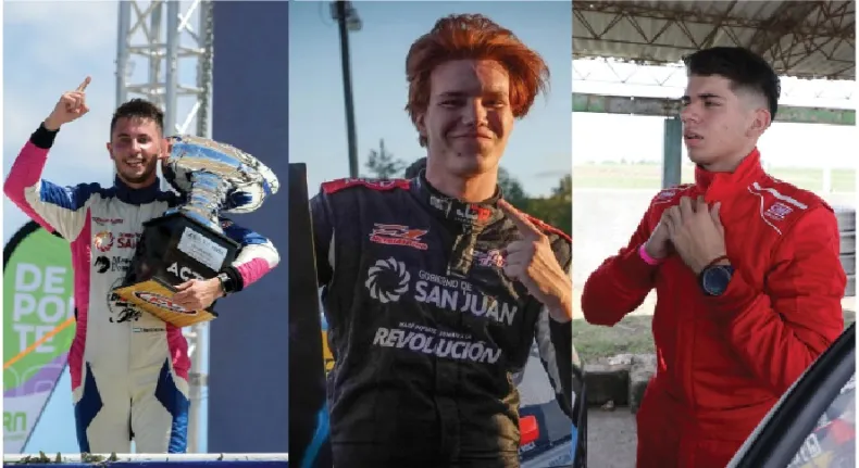 Tobías Martínez, Juan Cruz Roca y Joaquín Naranjo hoy son punteros del campeonato en el TC Pista, en Top Race Junior y en la Copa Abarth respectivamente. Los tres son jóvenes sanjuaninos producto de la Revolución Deportiva.