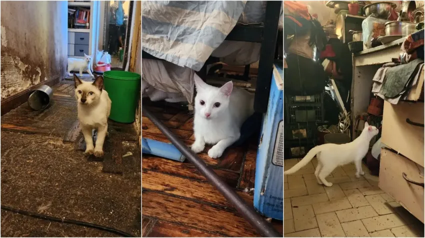 En el lugar había basura acumulada de los mismos animales y gatos de diferentes edades. Al parecer eran todos hermanos y se reproducían entre ellos. La mayoría estaba en muy malas condiciones, y en la casa hasta encontraron un animal muerto en estado de descomposición.