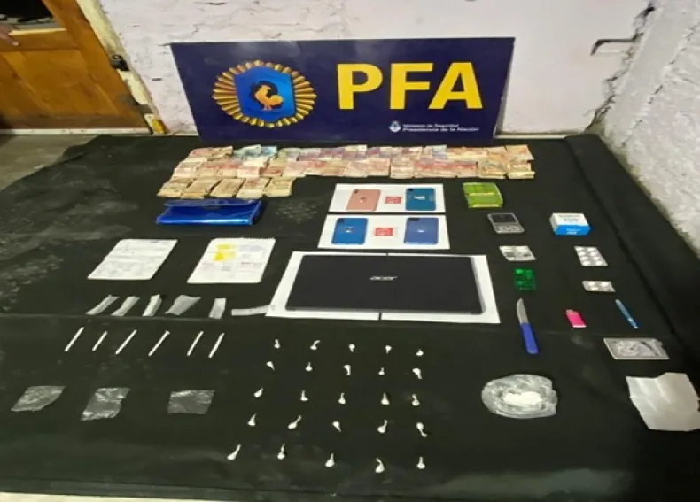 Además, se secuestró 70 dosis de cocaína, 450 flores y 360 dosis de marihuana, varios blísters de anfetaminas, 65. 000 pesos, dos balanzas, un picador de marihuana, una notebook y 7 teléfonos celulares.
