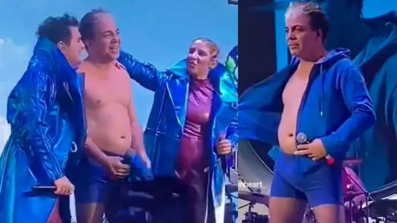 El mexicano se sacó la camisa y quedó semidesnudo, sorprendiendo así a todo el público que coreaba las canciones.