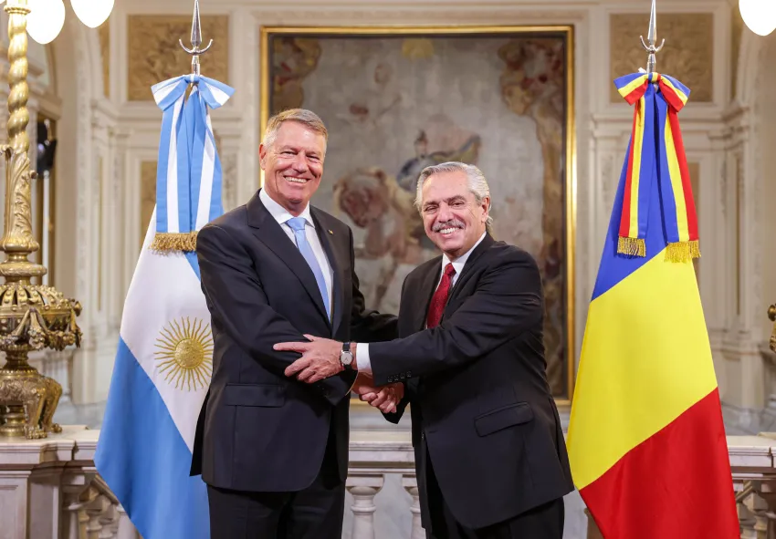 Con relación a su encuentro con el presidente rumano, Fernández sostuvo que hablaron del "vínculo entre ambos países y de las negociaciones para lograr un acuerdo comercial entre la Unión Europea y el Mercosur, así como del impacto de la guerra entre Ucrania y Rusia".