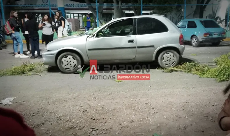 En horas de la tarde noche de este jueves, un brutal episodio se registró en inmediaciones de calle Rawson y La Paz, en Albardón. Un vehículo circulaba por la zona y, de repente, una rama de gran porte cayó sobre él. Como consecuencia hubo una persona herida.