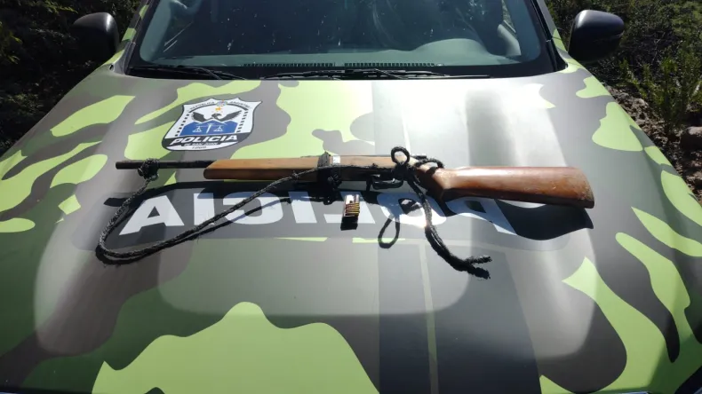 Eso motivó a los uniformados a realizar una inspección y así hallaron un arma larga, tipo rifle, con cargaor, 5 cartuchos calibre 22 mm.