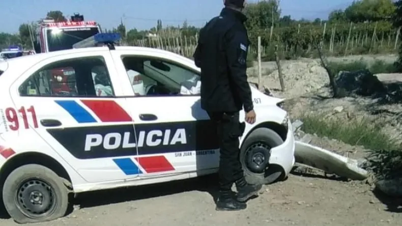 Un patrullero destruido, policías heridos y un hombre detenido, fue el saldo de una tremenda persecución que se inició en el departamento Chimbas y finalizo en Santa Lucía, después que varios móviles participaran del hecho.