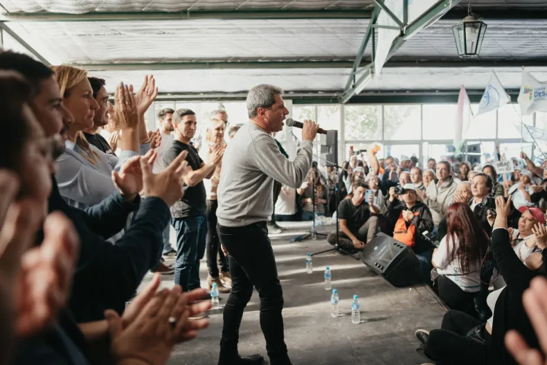 En el acto también estuvieron el candidato a vicegobernador, Cristian Andino, los ministros de su gabinete y y la diputada y candidata Celina Ramella.