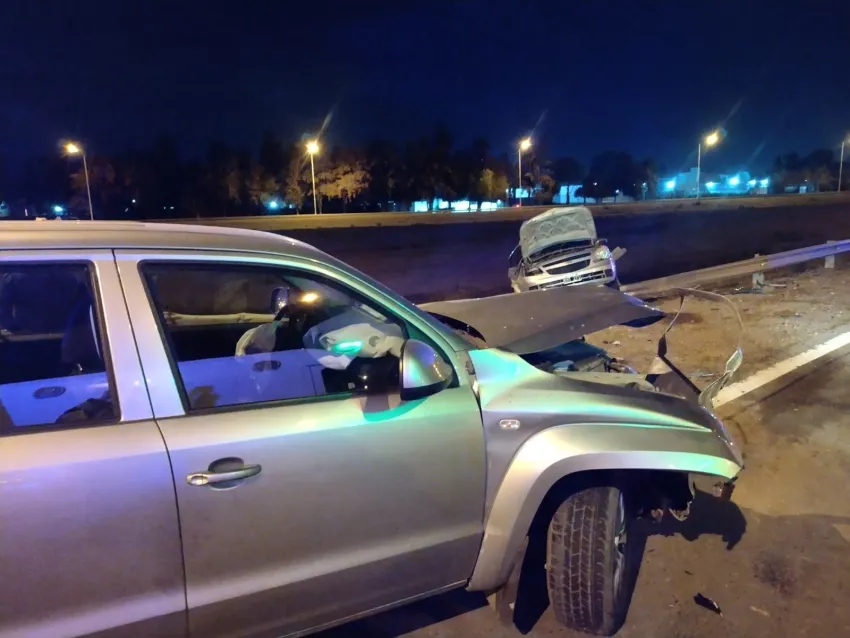 Según indicaron fuentes policiales, un auto Chevrolet Agile, se dirigía por Ruta 20 de este a oeste, conducido por un hombre de 42 años que era acompañado por una mujer de 33. Por razones que se investigan, al llegar al cruce de calle Belgrano, chocó contra una camioneta VW Amarok, en la que circulaba un ciudadano de 72 años junto a una mujer de 70.