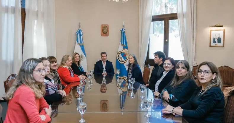 El encuentro se llevó adelante en Casa de Gobierno, Sergio Uñac estaba acompañado de la ministra de Educación, Cecilia Trincado Moncho.