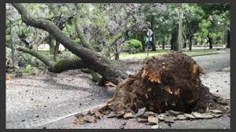 Desde la empresa distribuidora de energía eléctrica señalaron que hay varios obreros trabajando para poder reestablecer el servicio fundamentalmente en la zona de Tamberías, siendo ese el sector el más afectado por la caída de este gran ejemplar, como consecuencia de las fuertes ráfagas de viento que soplaron sobre las 9 de la mañana de hoy.