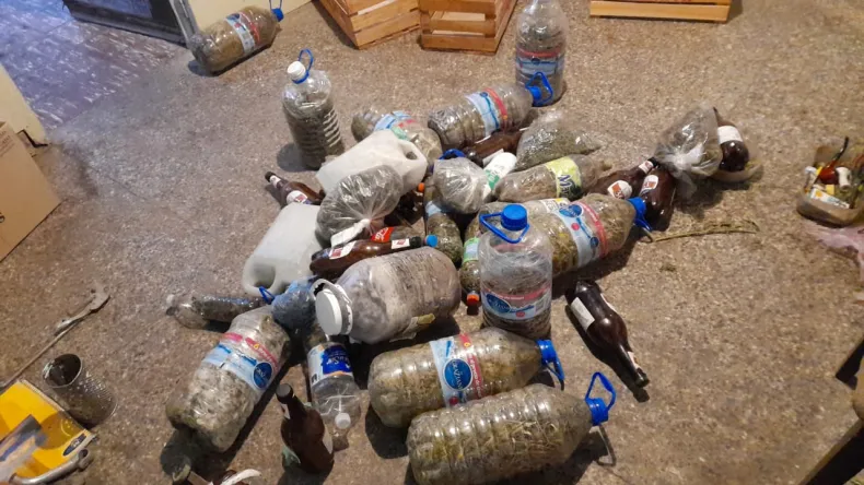 Encontraron en dos dormitorios, una gran cantidad de plantas de cannabis. Hallaron una conservadora que contenía plantas de cannabis y también varias bolsas con cogollos.