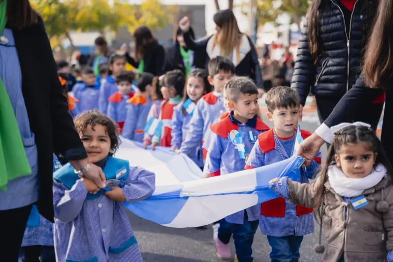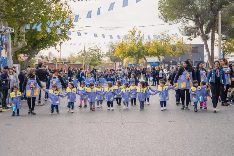 En el departamento de Santa Lucía, la Municipalidad organizó el Desfile de Jardines este miércoles. Se dio con un clima festivo y lleno de alegría, en el marco de la conmemoración del Día de la Revolución de Mayo. Hubo cientos de familias y de la comunidad educativa.