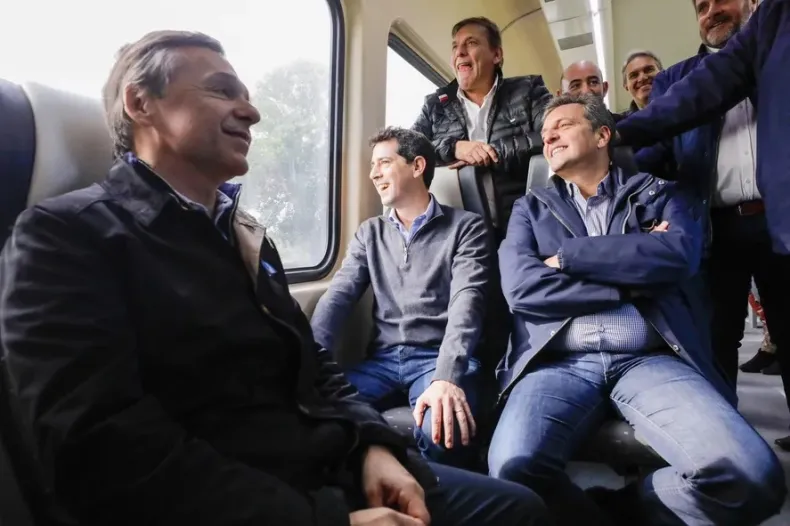 Los ministros de Economía, Sergio Massa, y de Interior, Eduardo Wado De Pedro, compartieron este sábado la puesta en marcha del tren turístico que une la ciudad bonaerense de Mercedes con la localidad vecina de Tomás Jofré.