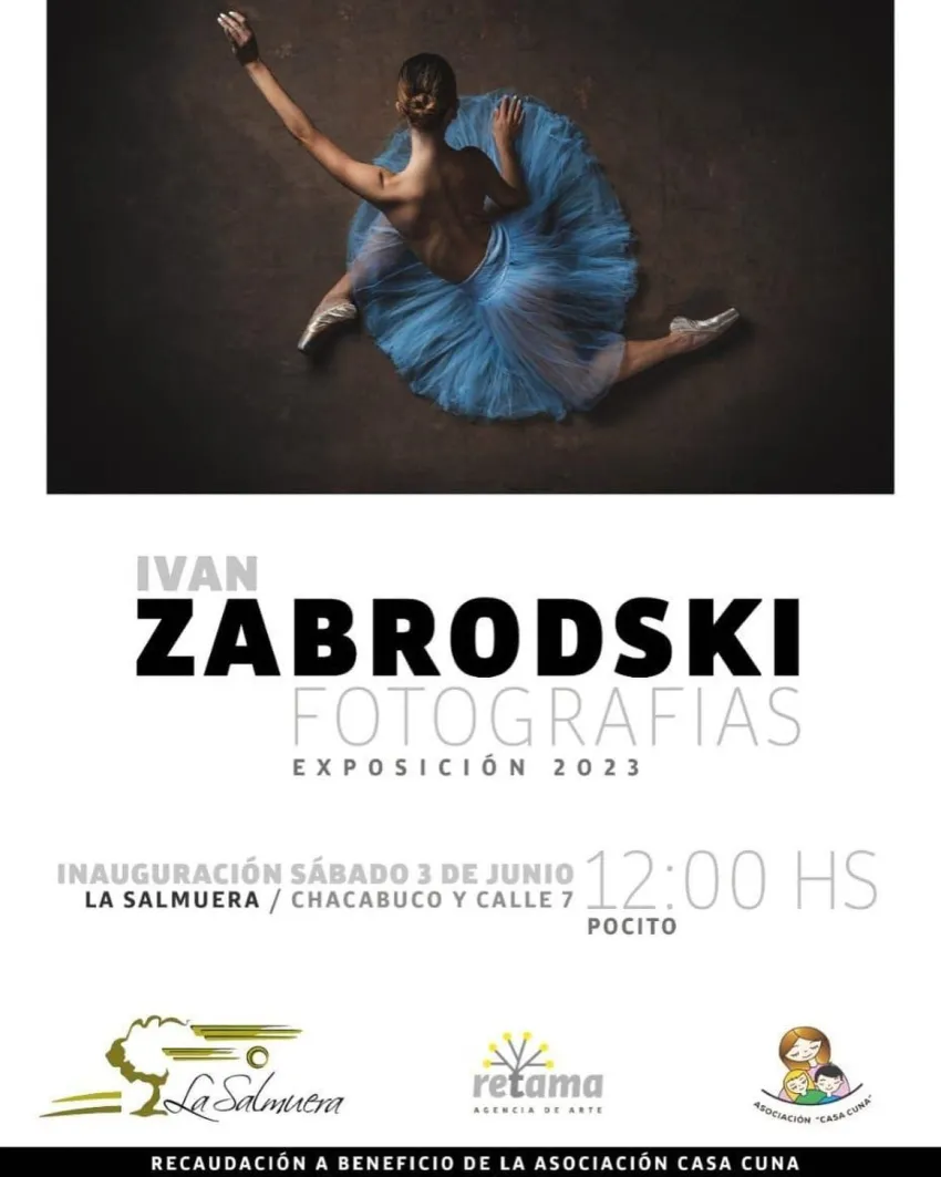 El próximo sábado 3 de junio a las 12 horas, en el espacio de arte La Salmuera en Pocito y bajo la organización de Retama Agencia de Arte, el conocido fotógrafoIván Zabrodski realizará una muestra fotográfica a beneficio de Casa Cuna San Juan.