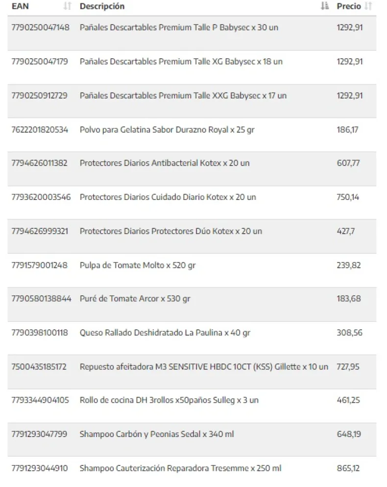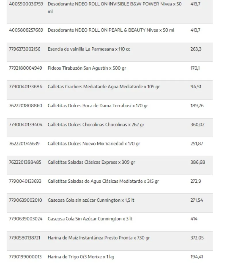 Se trata de una canasta con más de cien productos de consumo masivo. No aumentarán hasta el 15 de julio y luego tendrán una actualización del 3,8%.