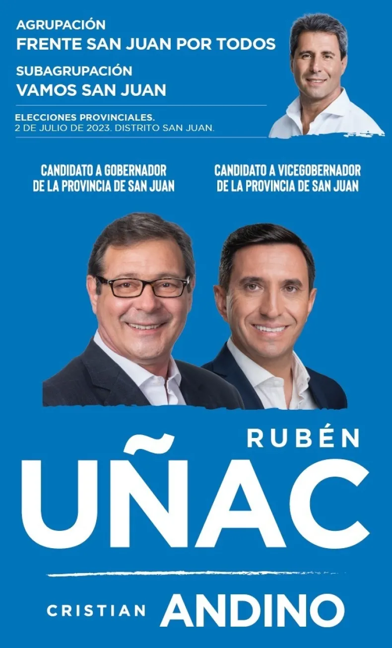 Sin embargo, atendiendo al hecho de que esta fórmula tiene como premisa la continuidad del proyecto político de Sergio Uñac, el gobernador también aparece con su imagen en el voto, como señal de garantía de esa continuidad.