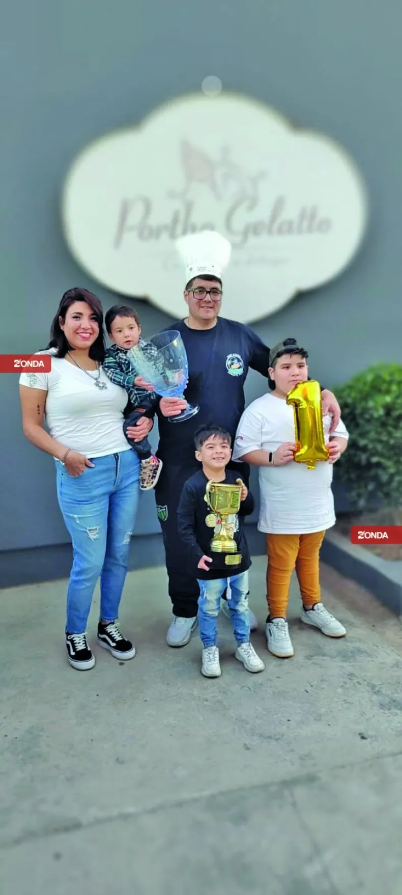 En el momento en que le entregaron sus premios, Gerardo pensó en una sola cosa, su familia. En realidad son cuatro, su esposa Norma y sus tres hijos Dylan, Alejo y Felipe. "Ellos se quedaron solos en San Juan. No estoy acostumbrado a viajar, a irme de casa. Salgo del laburo a casa, estoy con ellos, salgo con ellos", enfatizó a Zonda Diario.